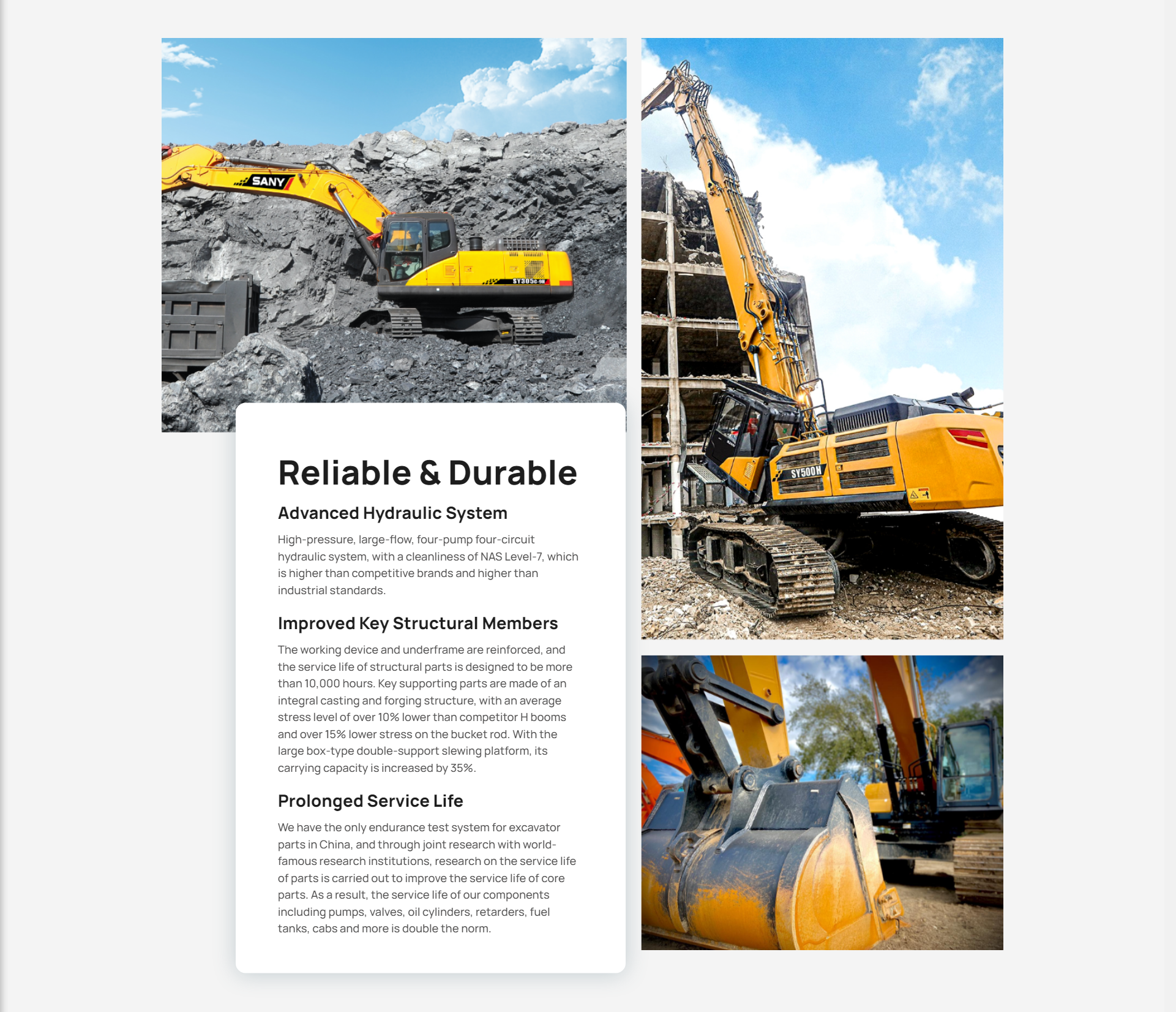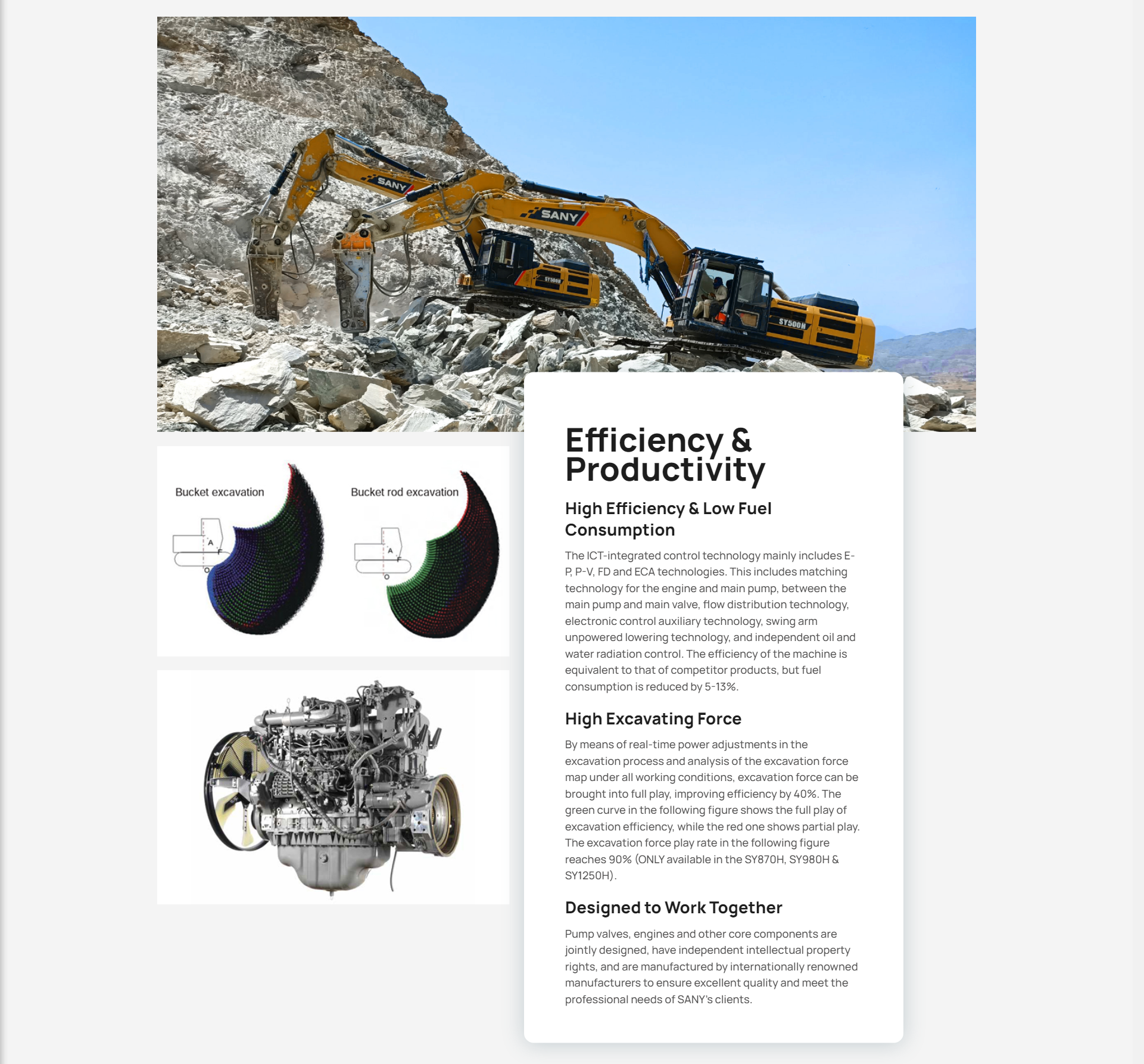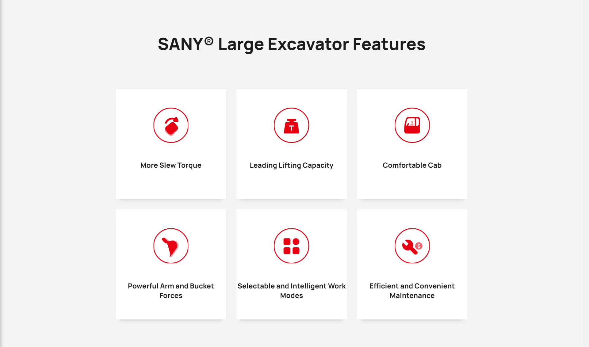 Large excavators are required in the majority of construction projects at some stage, especially for those projects that are of a larger scale and involving land excavation and preparation prior to construction work. SANY’s large excavators, ranging from 36 t to 125 t, are able to operate for 24 hours a day in the most challenging environments in earthmoving, construction, mining and quarrying operations.
