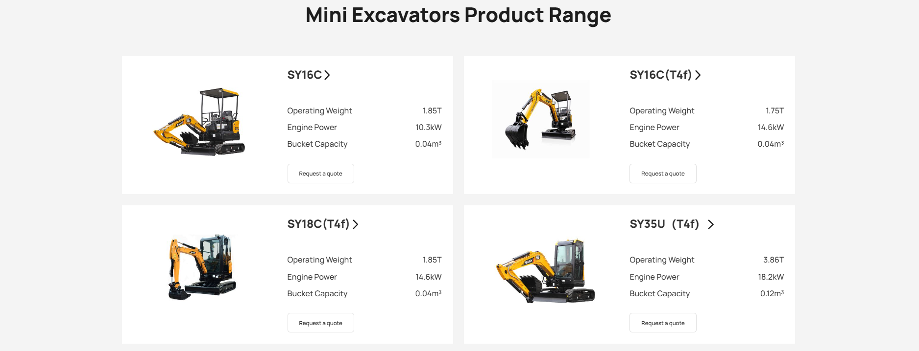 Why Choose SANY Mini Excavators? Common Jobs for SANY Mini Excavators Ranging from 1.75 t to 5.3 t, SANY mini excavators are multi-functional in various scenarios, easy to transport and ideal for confined job sites.