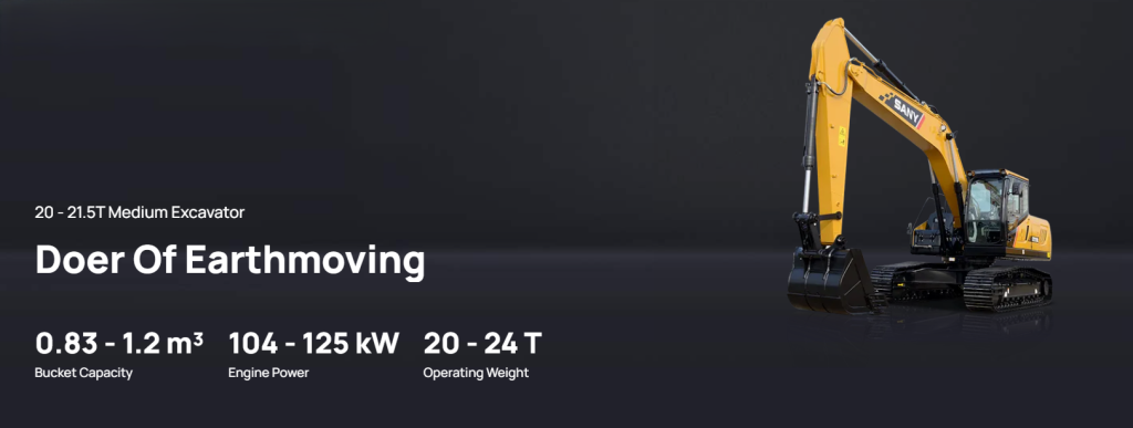 SY215E | 1.1 m³ | 150 kW | 23.2 T |
