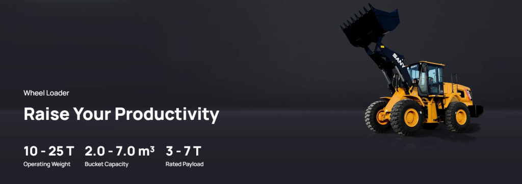 · Engineered for higher productivity, SANY wheel loaders are equipped with more powerful powertrain & leading hydraulic technology, resulting in larger capacity, faster speed, and more responsive braking performance.